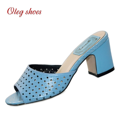 Oleg shoes Neueste Custom Slider Printing Laser Stanzen Dick High Heel Sommer Strap azier fähig für Hausschuhe